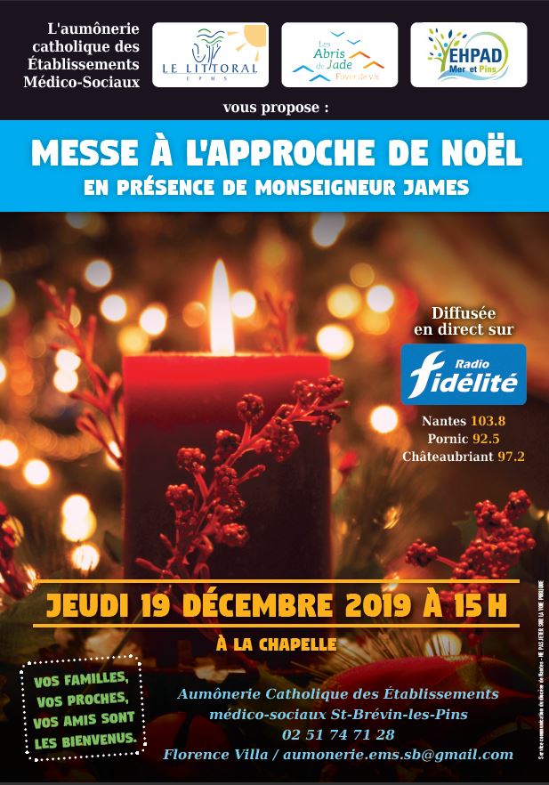 Le tractA quelques jours de Noël, Mgr Jean-Paul James se rendra à l’aumônerie catholique des Établissements médico-sociaux de Saint-Brévin-les-Pins. Jeudi 19 décembre 2019 à 15h à la chapelle de l’établissement, il présidera la messe pour les malades et les personnes âgées, avec tous ceux qui en prennent soin, familles, soignants et bénévoles des équipes d’aumônerie hospitalières (SDAH), du service évangélique des malades et personnes âgées (SEM), de la pastorale des personnes handicapées (PPH).