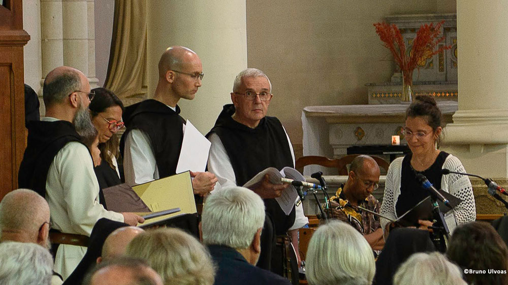 Présidée par Mgr James. Prédication de Dom Etienne Baudry, maître des novices à l’Abbaye Notre-Dame de Bellefontaine à l’époque du départ de ses trois frères moines pour Notre-Dame de l’Atlas.