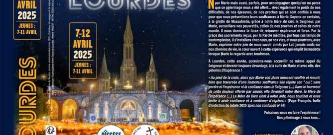 Avec Marie, Pèlerins d’Espérance Galerie Avec Marie, Pèlerins d’Espérance Pèlerinage en France Avec Marie, Pèlerins d’Espérance Pèlerinage diocésain à Lourdes du 7 au 12 avril 2025 Par drapion|2025-02-05T15:57:28+01:005 février 2025|Pèlerinage en France|0 commentaire Lire la suite