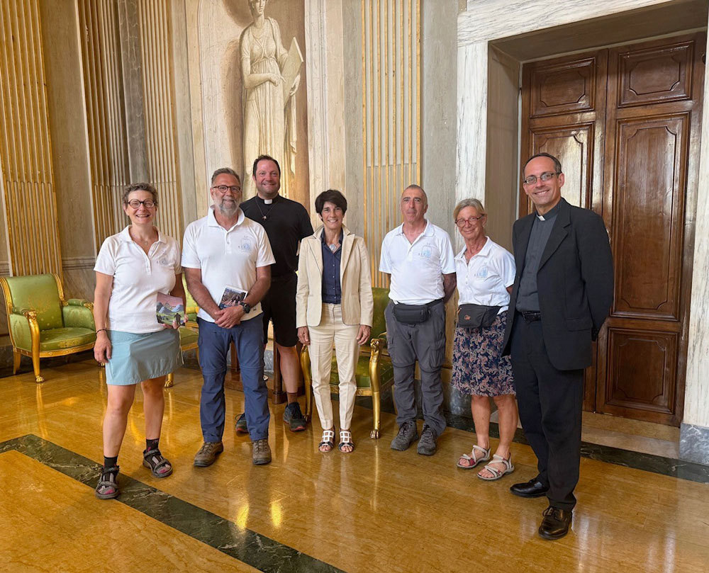 Et voilà ! Ils sont arrivés place Saint-Pierre à Rome, mercredi dernier, avec beaucoup de joie et d’émotion, nous écrivent Anthony Grouard et Anne-Laure Timmel, les fondateurs de l’association des Haltes Pélerines et de la Via Ligeria : « Nous étions 26 Romieux. Notre chemin, débuté depuis la cathédrale Saint-Pierre de Nantes, le 8 juin et s’est étiré sur plus de 2100 km, partagés en 4 quatre relais. Nous avons participé à l’audience générale et aperçu de près le pape Léon avant d’être reçus de manière officielle à l’ambassade de France auprès du Saint-Siège, par Florence Mangin, ambassadrice. Visiblement, dans cette année jubilaire, personne n’a réalisé un aussi long chemin pour gagner Rome, ni en France, ni en Europe ! »