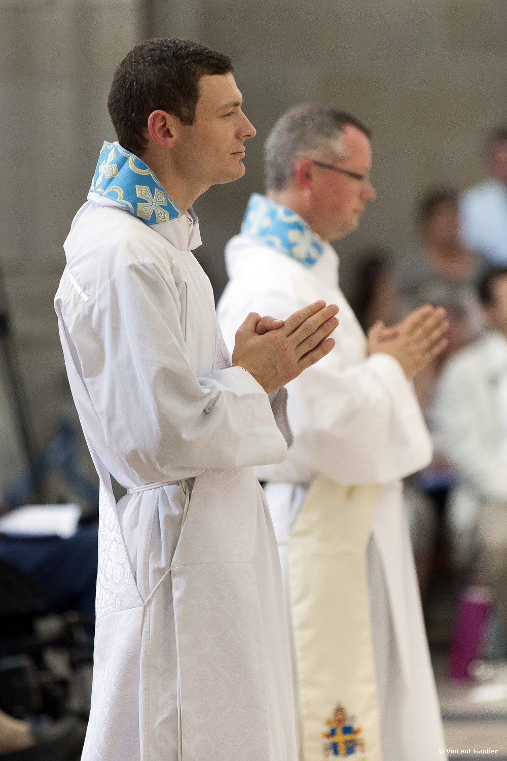 [/et_pb_text][et_pb_gallery gallery_ids= »27541,27554,27553,27548″ _builder_version= »3.21″ text_orientation= »center » caption_font= »|700||on||||| » title_level= »h6″ title_text_color= »rgba(0,0,0,0) » hover_overlay_color= »rgba(255,255,255,0.9) »] [/et_pb_gallery][et_pb_text _builder_version= »3.21″ background_size= »initial » background_position= »top_left » background_repeat= »repeat »]Le Père Denis Bourget, supérieur du séminaire Saint- Jean, a présenté les deux candidats à l’Évêque. Retraçant leurs parcours il a mis en lumière leurs qualités et leurs personnalités : Nicolas entretient une véritable passion pour son métier de professeur d’histoire qu’il a exercé avant d’entrer au séminaire. Cela lui donne des talents de pédagogue qu’il déploie dans les paroisses où il est envoyé (paroisses St-Pierre-de-L’Océan, St-Vincent-des-Vignes et St-Jean- Paul II). Le Père Bourget ajoutant : « Doté d’une grande sensibilité, Nicolas se laisse toucher par les situations et les personnes qu’il rencontre. Son goût de transmettre et de faire grandir sont appréciés par les jeunes et les catéchistes. Au fil des ans, il s’est laissé forger un cœur de pasteur qui ne demande qu’à s’élargir encore ».