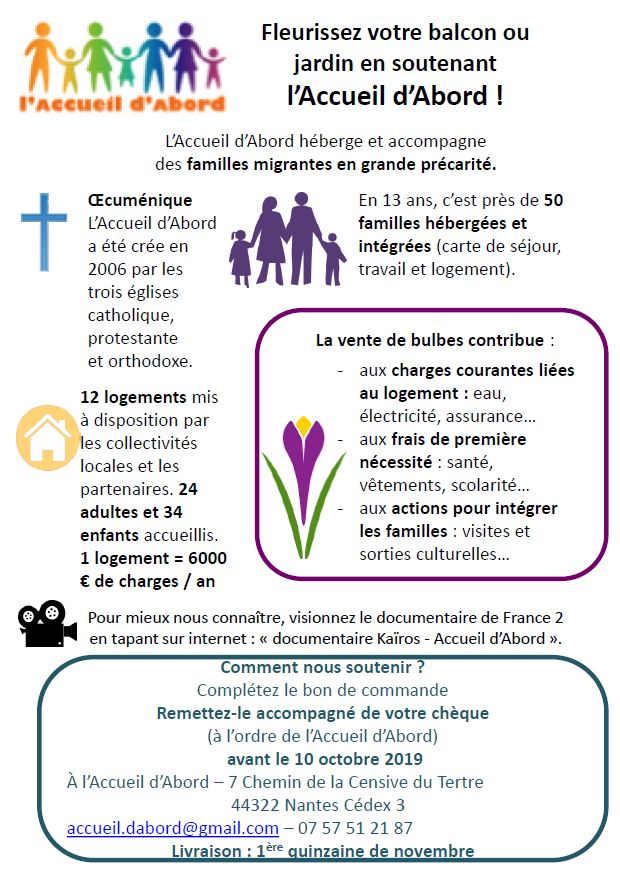 Pour l’aider financièrement, l’Accueil d’Abord met en vente des bulbes afin de fleurir votre balcon ou jardin.