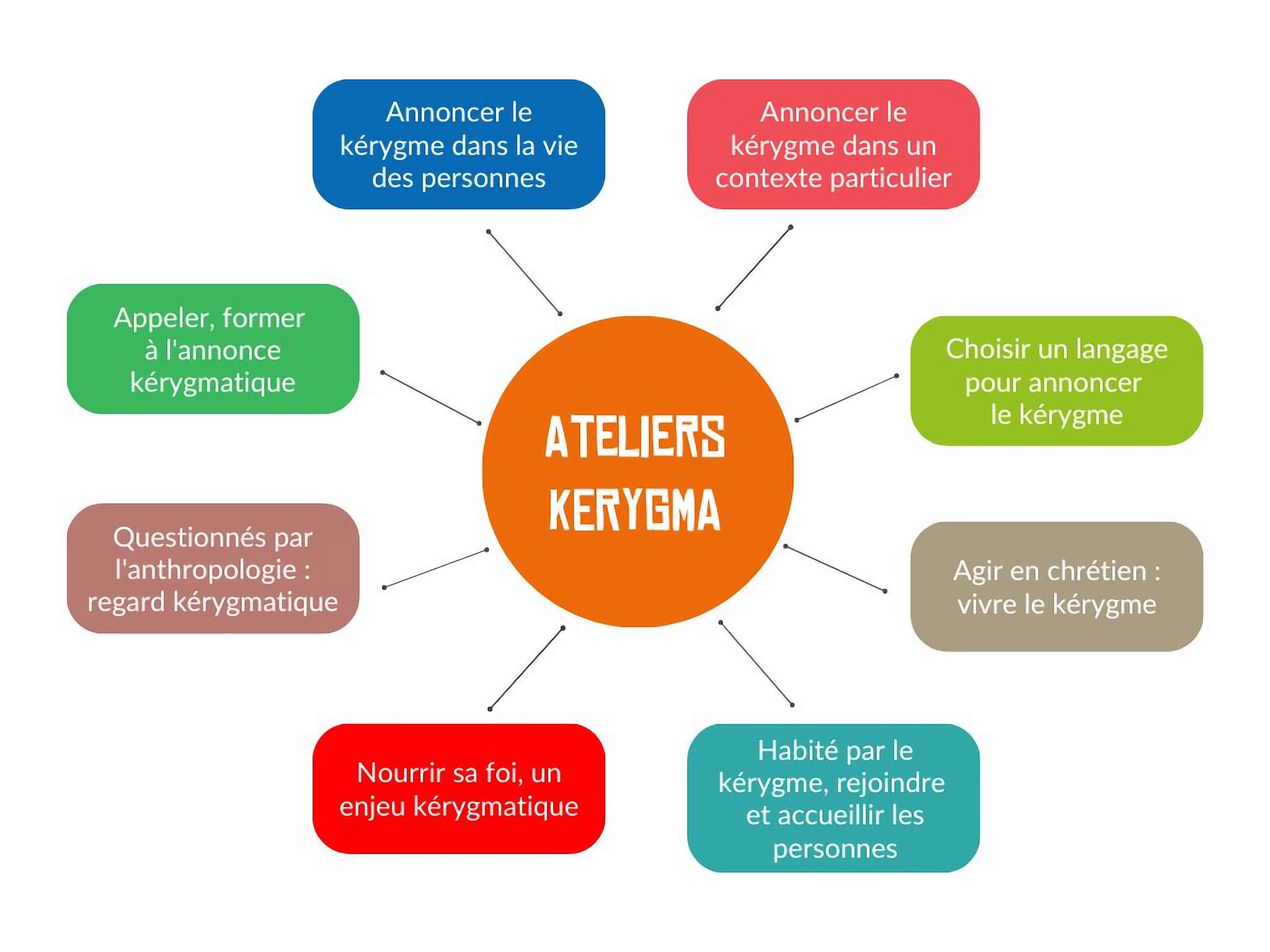 Cette délégation de 67 personnes comprend des personnes issues de pastorales variées : liturgie, catéchèse, santé, famille, diaconie… Des laïcs de toutes les zones pastorales, 10 prêtres et notre évêque. Le programme s’annonce riche en célébrations, enseignements. Un forum d’initiatives et de nombreux ateliers sont prévus, en voici quelques exemples (cf. schéma ci-après) ; chaque participant pourra en vivre deux.