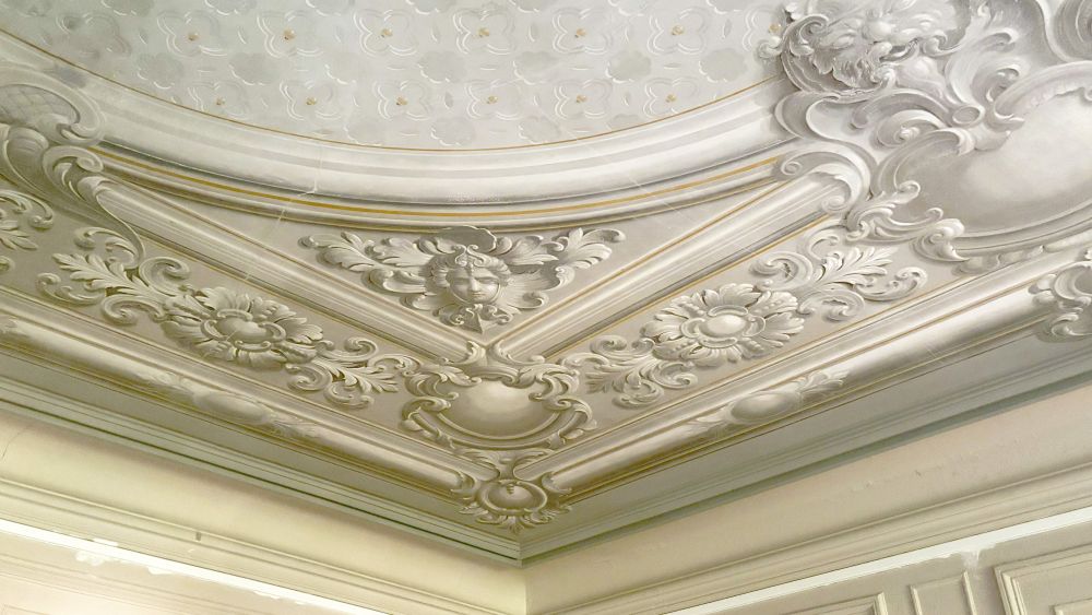 Ainsi, explique-t-elle, la fresque du plafond de la salle de réception a été rehaussée d’une nouvelle bordure ton sur ton, ce qui la met en valeur bien plus que les couleurs tranchées qui existaient