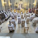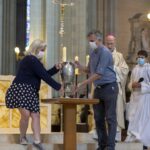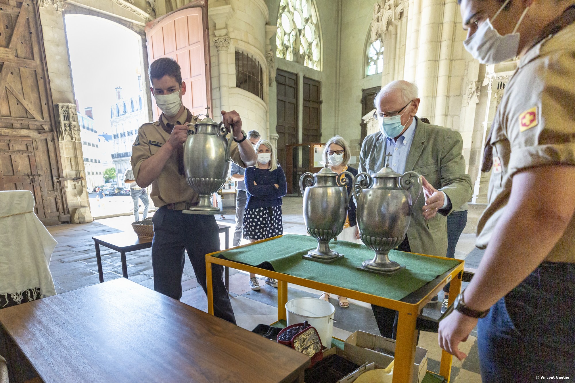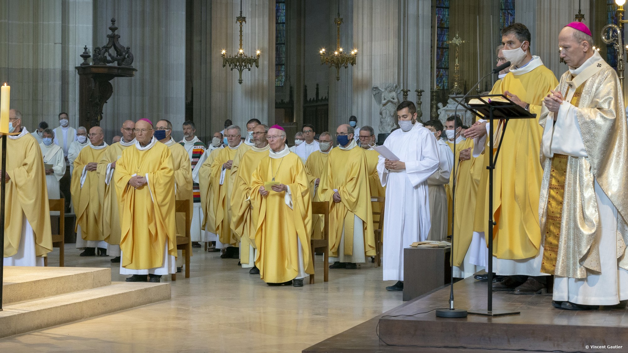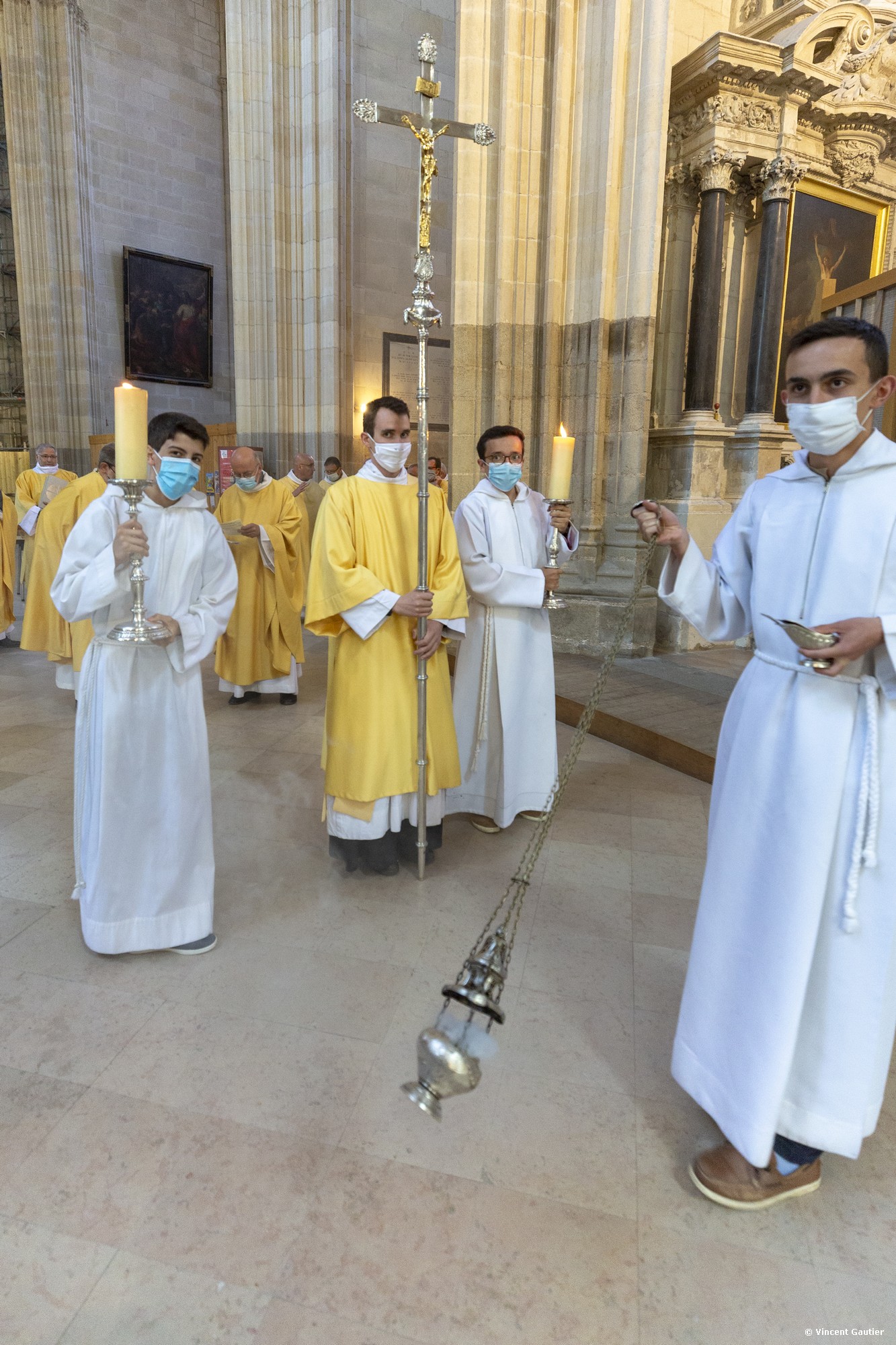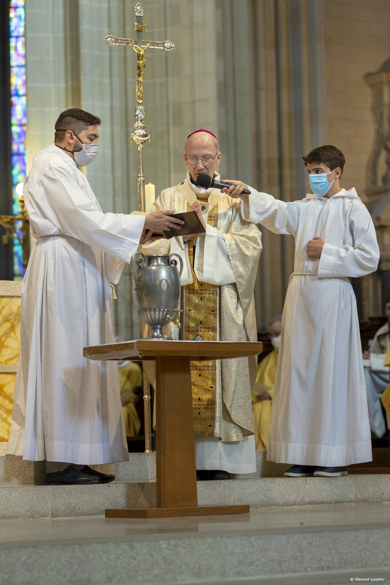 La messe chrismale, reportée du 7 avril au 27 mai, s’est vécue avec une assemblée un peu plus conséquente. Les mesures de précaution sanitaire ont toutefois contraint à limiter strictement le nombre de personnes présentes (prêtres, représentants des paroisses, des services, des congrégations…) Cette messe chrismale a été diffusée sur le site internet du diocèse et sur Radio-Fidélité, afin de vivre un temps de communion diocésaine, autant que les circonstances le permettaient.
