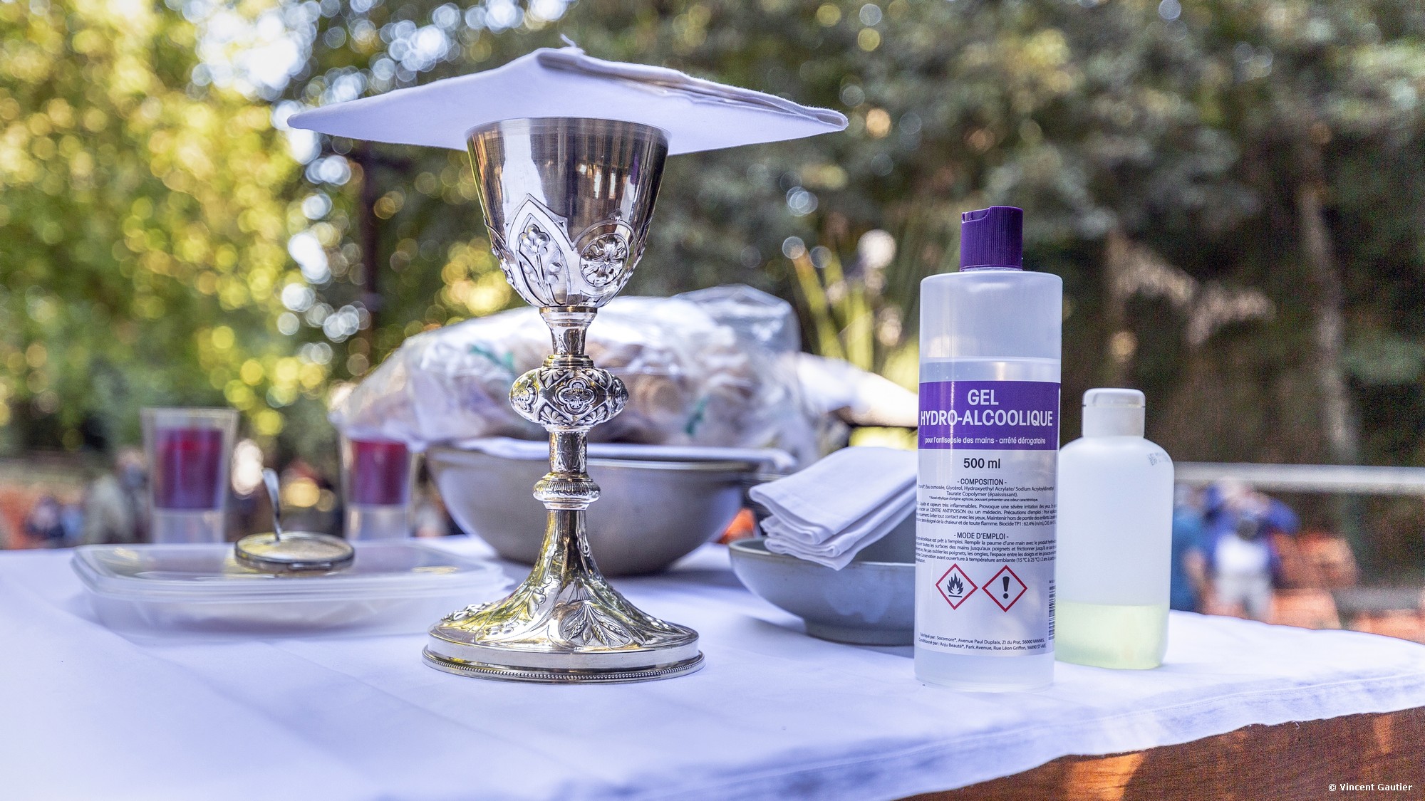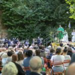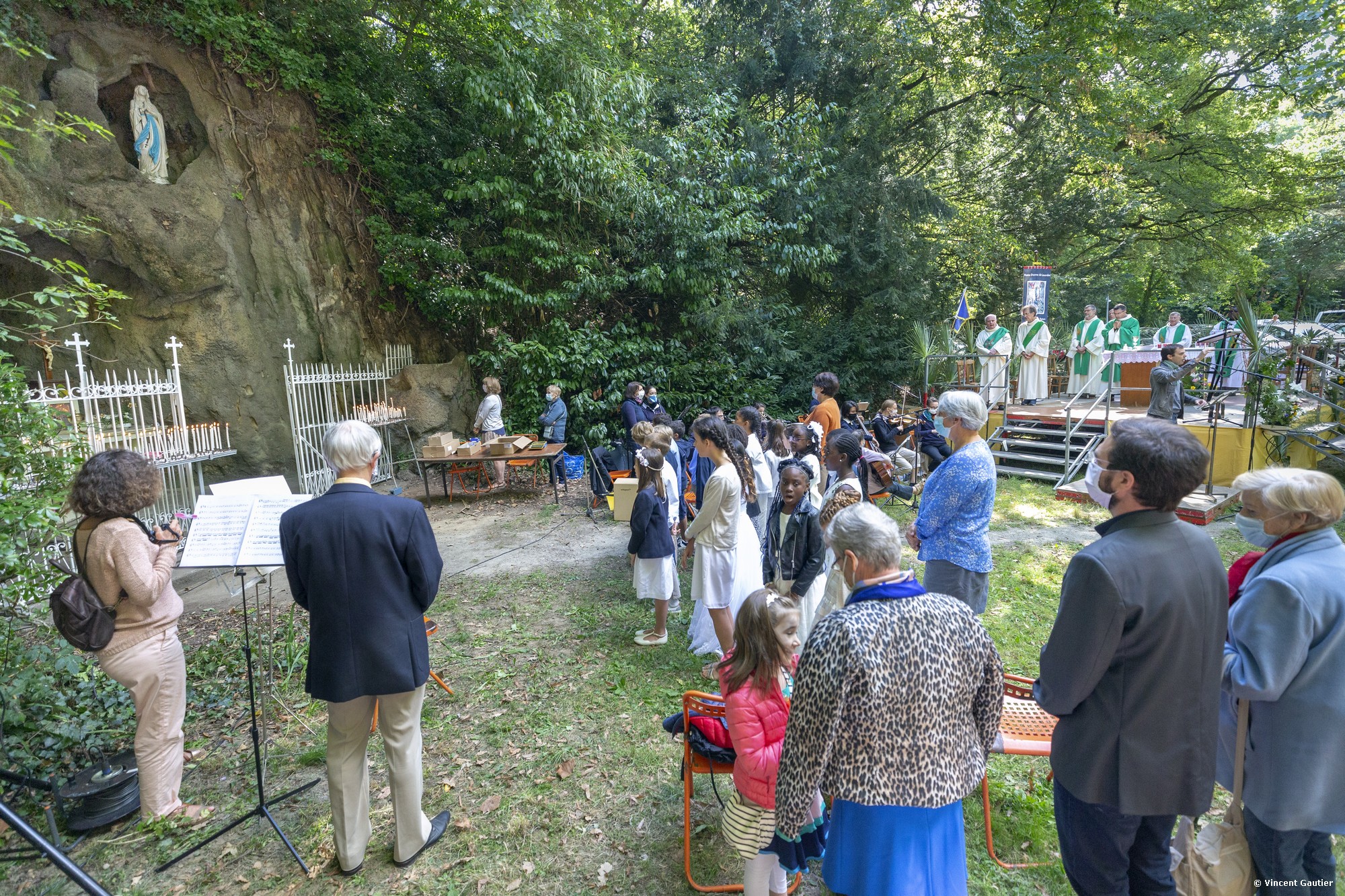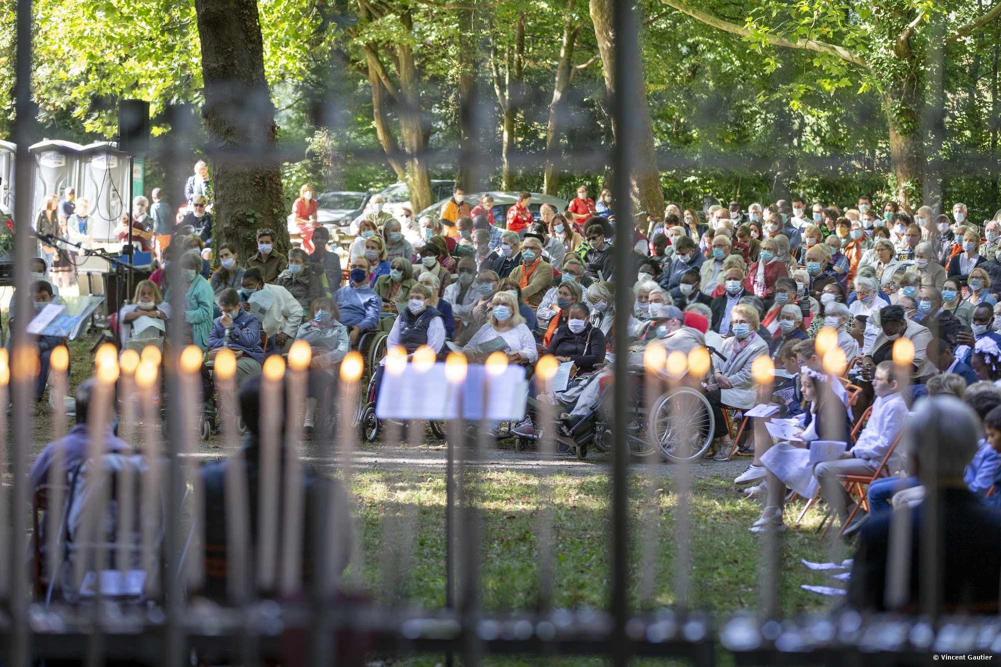 Le père Sébastien de Groulard présidait dimanche 6 septembre 2020 le pèlerinage à la grotte de Lourdes, du Pont du Cens, à Nantes. Malgré le contexte sanitaire, les pèlerins étaient au rendez-vous. Alors qu’il n’avait pas été possible de nous vivre au printemps, ni même cet été de pèlerinage diocésain à Lourdes plus de 700 personnes participaient à ce rendez-vous auprès de Marie.