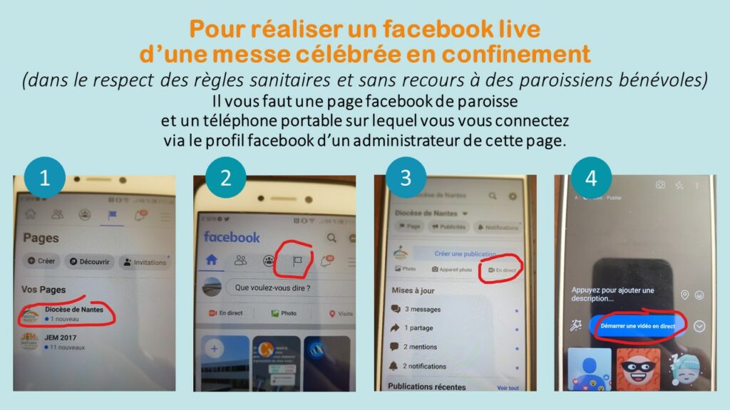 - Puis cliquez sur « Démarrer une vidéo en direct » (vignette 4) : à partir de ce moment vous êtes à l’antenne !