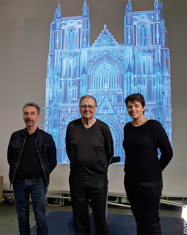 Franck Marty de Spectaculaires allumeurs d’images, l’artiste Alain Thomas et Christelle Ploquin, journaliste pour Le Jour du Seigneur et Présence Protestante.