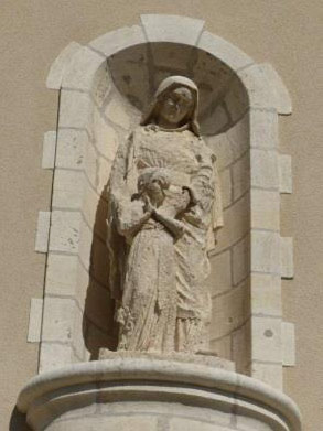 Cette statue, présente sur la façade plein Ouest, à 6.50 m de hauteur, date de l’origine de la chapelle, elle a donc plus de 140 ans. Réalisée en tuffeau, elle est très dégradée, sa restauration aurait été difficile et onéreuse.
